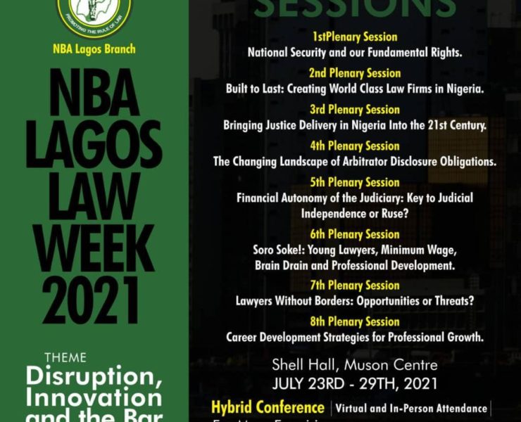 The 2021 Nigerian Bar Association (NBA) Lagos Branch law week will hold from the 23rd to…