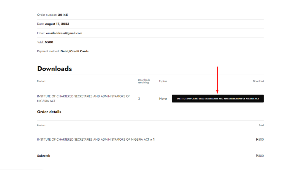 5. Upon a successful payment, you will be presented with a button to download your file immediately.