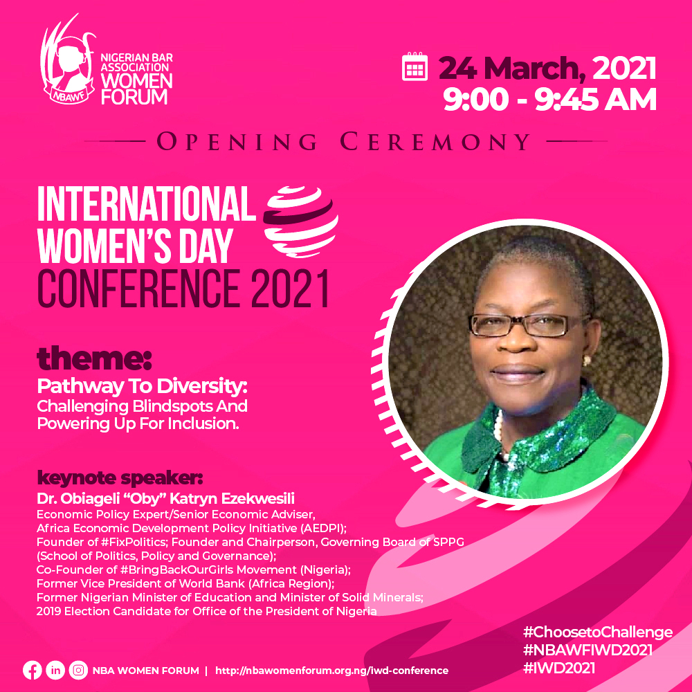 In commemoration of International Women’s Day, the NBAWF is set to host a power-packed virtual conference starting on Wednesday, 24th March 2021, themed, “Pathways to Diversity: Challenging Blindspots and Powering Up for Inclusion”.