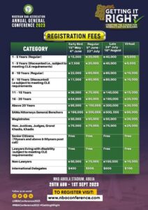 The Chairman of the conference organising committee, Mazi Afam Osigwe, SAN, urged lawyers to take advantage of the early bed registration while it last