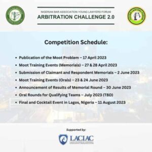 The Nigerian Bar Association Young Lawyers Forum (NBA-YLF) is pleased to announce the second edition of its arbitration moot competition, the Arbitration Challenge 2.0. As with the inaugural edition, we invite participation from all NBA branches nationwide.