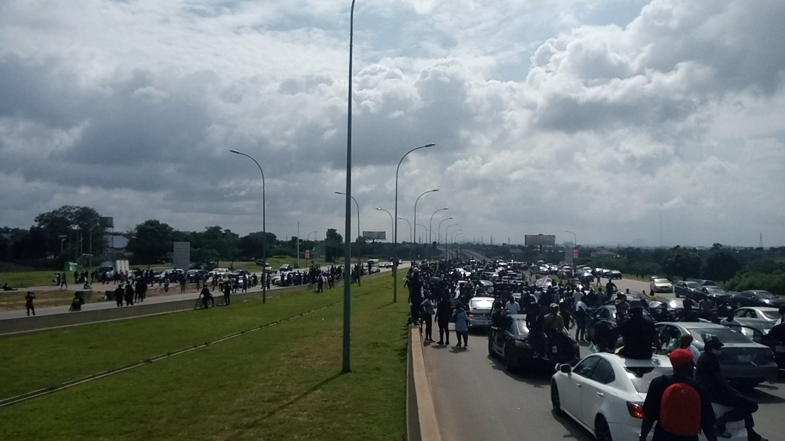 BREAKING: Protesters Block Abuja Airport Highway, Demand Buhari’s Resignation