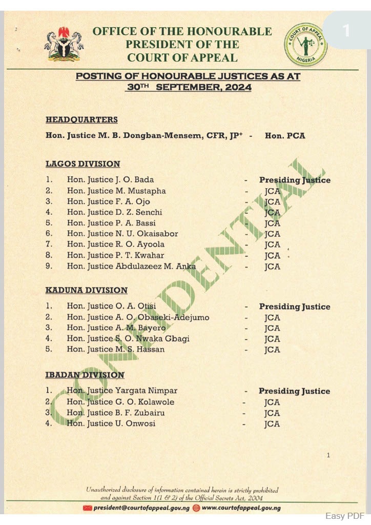 The Court of Appeal has announced new postings for Honourable Justices of the court Effective from September 30, 2024.