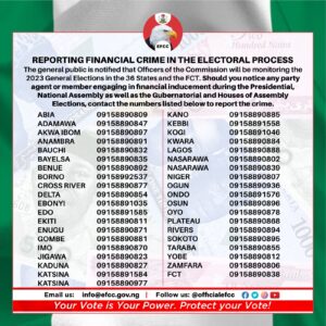 They can also reach the Commission through our social media handle, @officialefcc or by email, info@efcc.gov.ng.