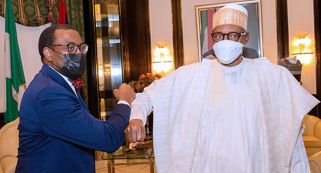 President Muhammadu Buhari on Tuesday received the President of the African Development Bank, Dr Akinwumi Adesina at the State House in Abuja.