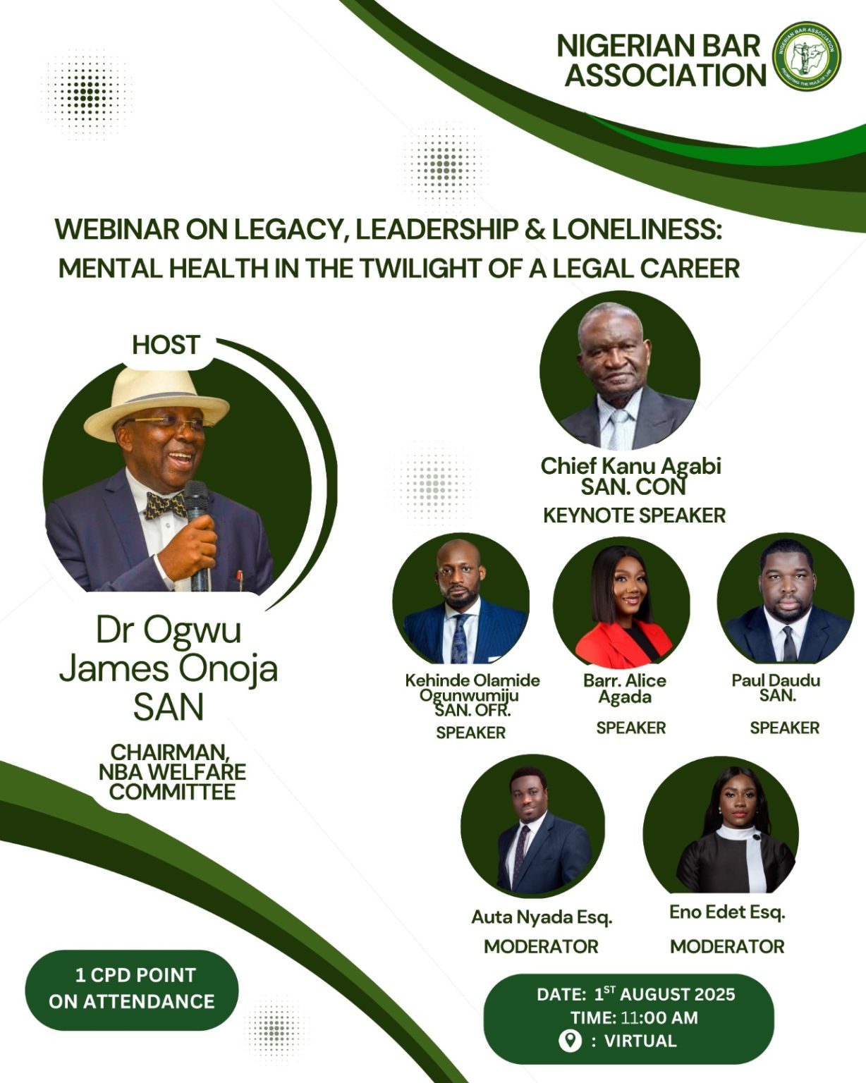 Leadership, Legacy & Loneliness: Mental Health in the Twilight of a Legal Career – NBA Welfare Committee holds Webinar 1st August