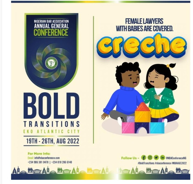 The Technical Committee on Conference Planning (TCCP) for the ongoing 62nd Annual General Conference of the Nigerian Bar Association (NBA) has received commendations for not only providing a creche facility at the conference venue but also for making the facility conducive and child-friendly.